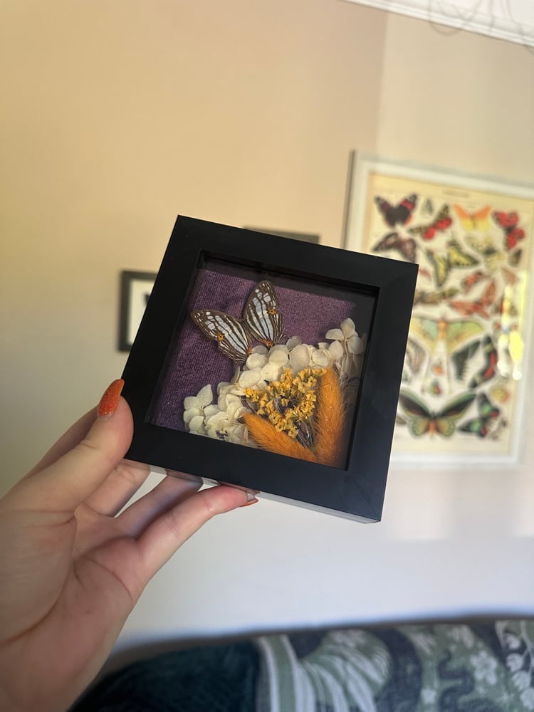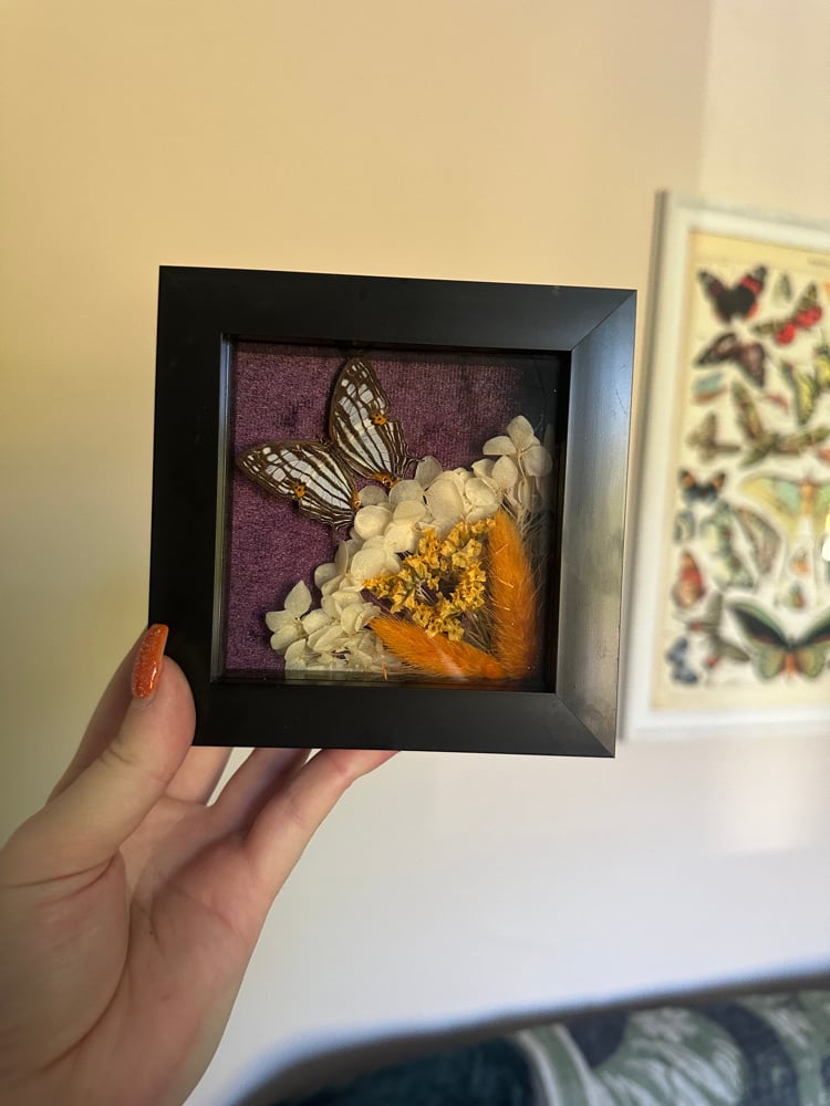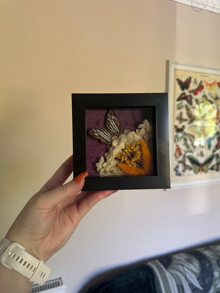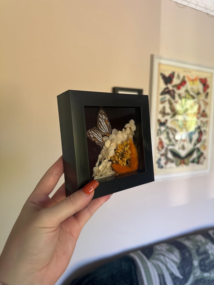 Common Mapwing butterfly in a modern black frame.