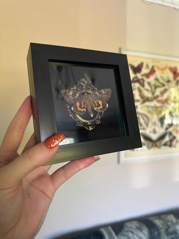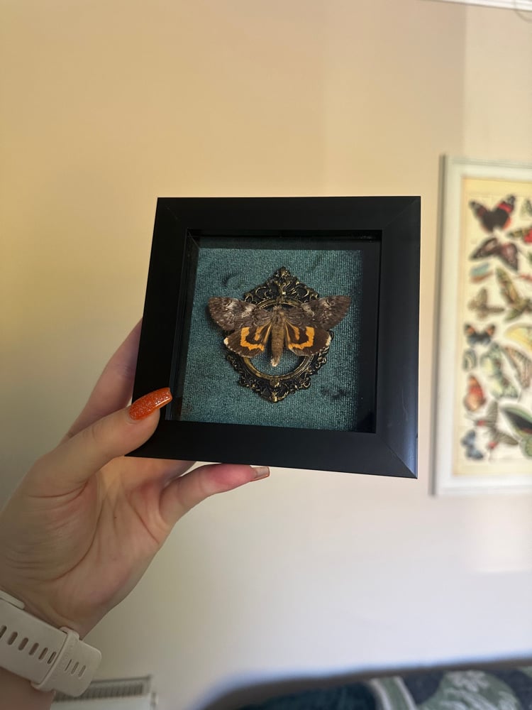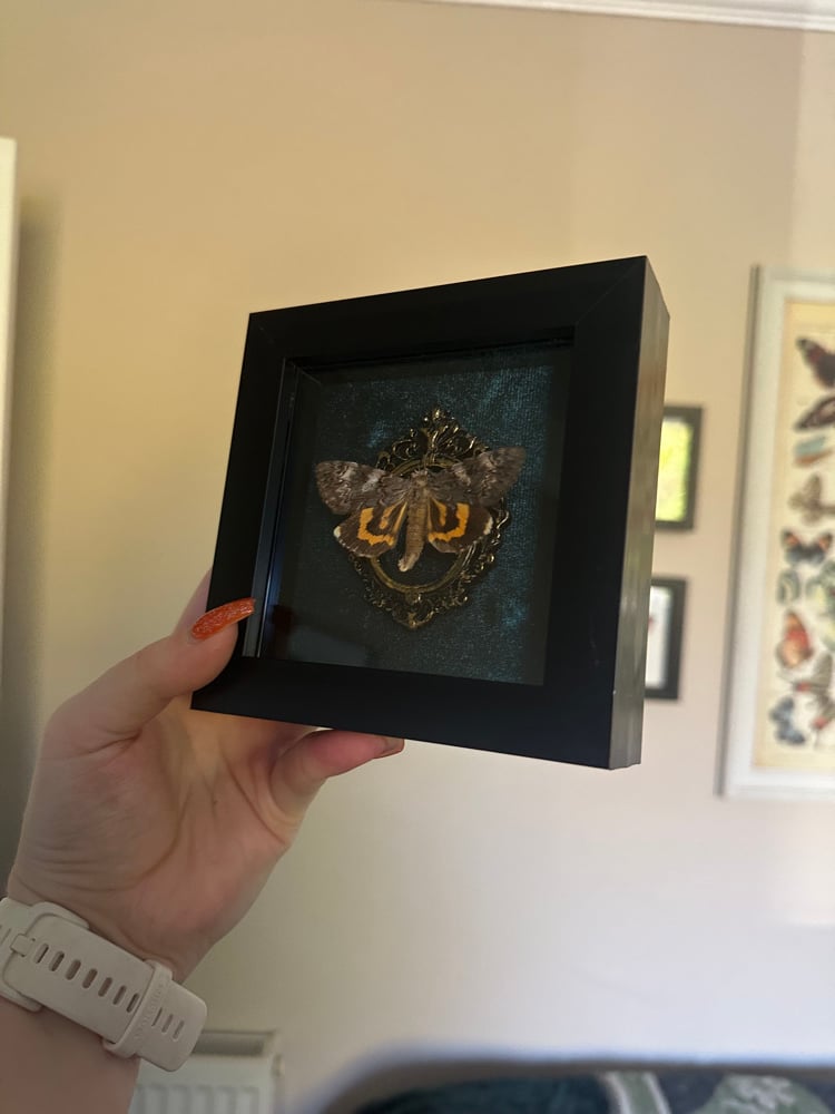 Yellow bands underwing Moth in a modern black frame.